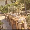 Des tables en bois, des chaises, des bancs, des bottes de foin, du petit mobilier, des fleurs séchées et des surprises !