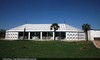Une tente caidale entourée de palmiers, bambous,
