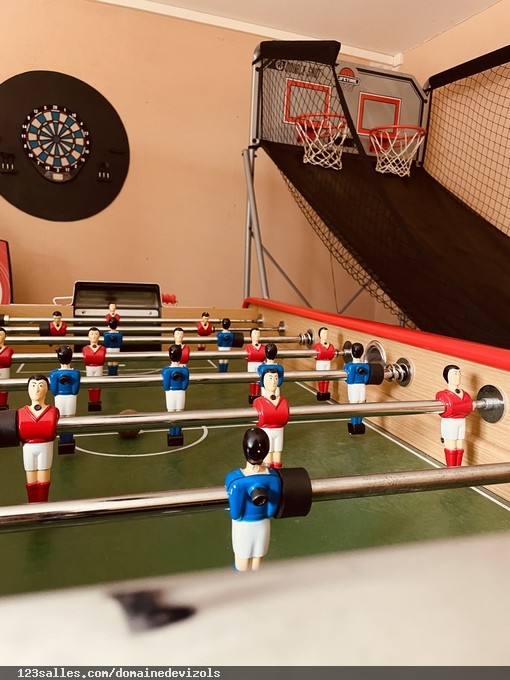 Avec vos enfants ou bien avec vos amis vous profiterez de notre salle de jeux avec baby-foot, jeu de fléchettes, tir à l'arc pour enfants, basket arcade double shoot, Molky et divers jeux de société sera à votre disposition.