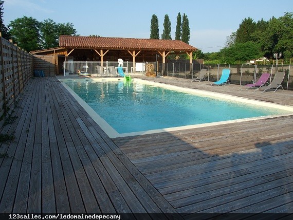 une grande piscine de seize sur six avec pataugeoire.