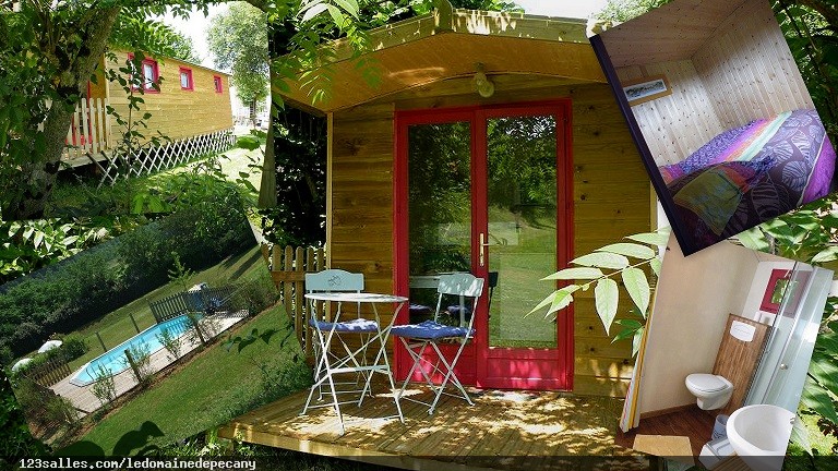 * Onze locatifs bois type "chalet" ou Mobil home, isolés et bardés de bois chaque locatif disposant d'une terrasse couverte, confortable en toute saison.