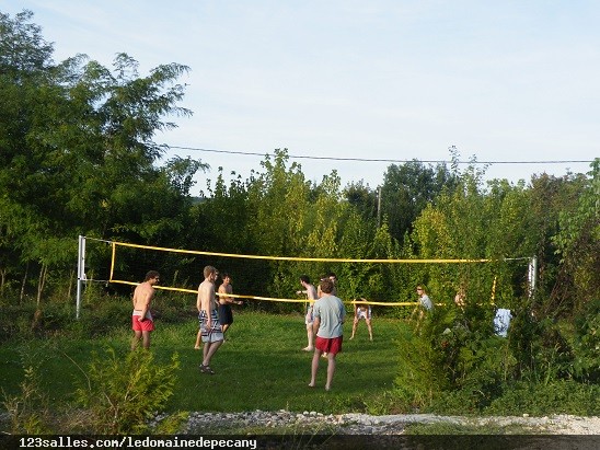 une aire de jeux pour les enfants et filet de volley/foot/basket