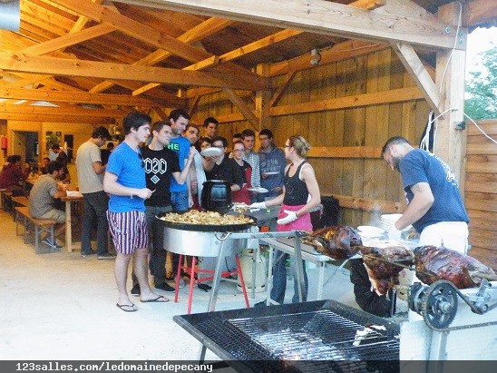 Le site dispose d'une grande salle qui peut être ouverte ou fermé selon la saison grâce à des grands portes coulissantes, avec petite cuisine pour vos fêtes de familles, repas ...