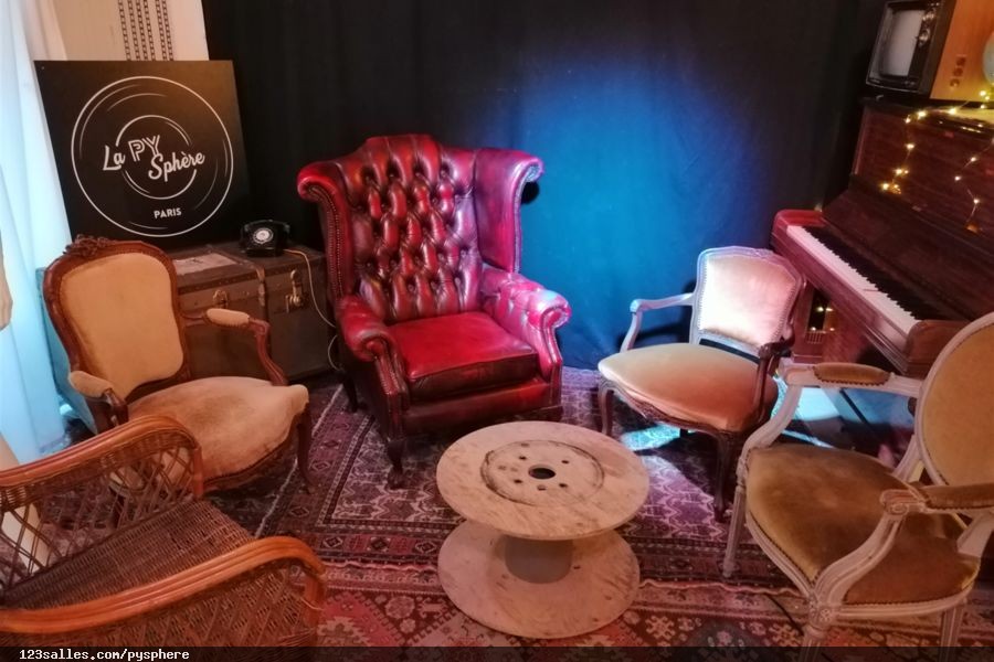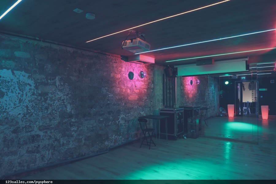 La PY Sphère est une salle lumineuse de 100 m², très accessible, qui peut recevoir jusqu'à 80 personnes. Répartie sur deux étages, elle dispose d'une pièce principale avec un bar, un espace cosy ainsi qu'une salle au sous sol pour votre soirée dansante qui peut accueillir jusqu'à 30 personnes. L'espace est privatisable en entier mais totalement modulable. L'équipe est présente pour réaliser l'implantation nécessaire. Vous avez en permanence disponibles le bar, la scène, la salle de détente années 90s et la salle de danse. Un équipement audio-visuel est également sur les lieux.